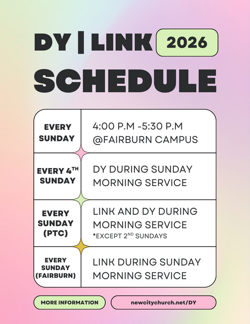 The Link meets 1st and 3rd Sundays at Peachtree City Campus in the District Room, and every Sunday at the Fairburn Campus in the District Hall. Can't remember it all? Don't worry. A dismissal announcement during the Sunday morning service lets you know you are welcome to join our students for an age appropriate experience. We look forward to meeting you!
